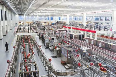 4月11日,工人骑着均衡车正在泸州老窖智能包拆核心的车间内巡检。车间内的5条出产线已实现全流程从动化,包拆速度每小时可达1。5万瓶,出产效率较保守模式提拔2倍以上。