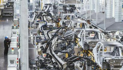 4月16日,领克汽车成都工场焊卸车间内,机械臂正焊接新能源汽车车架。该厂颠末“智改数转”,全体出产的智能化、消息化、柔性化、从动化程度达到国际先辈程度。